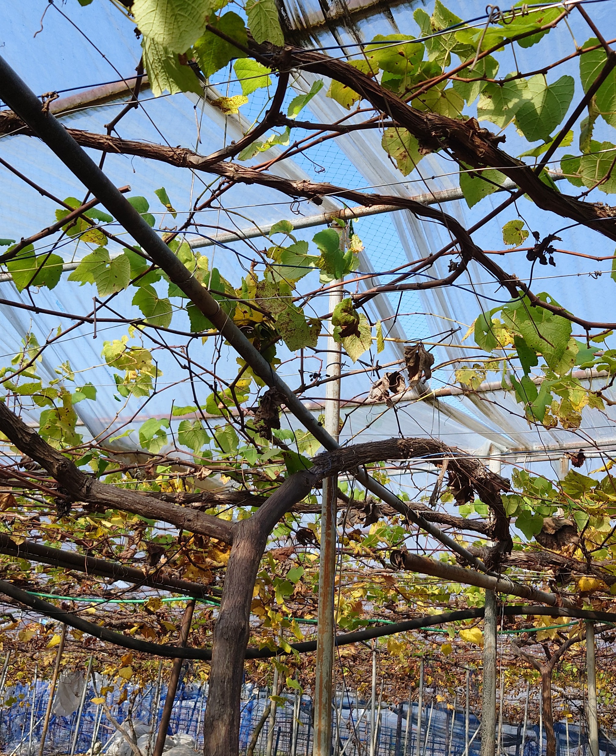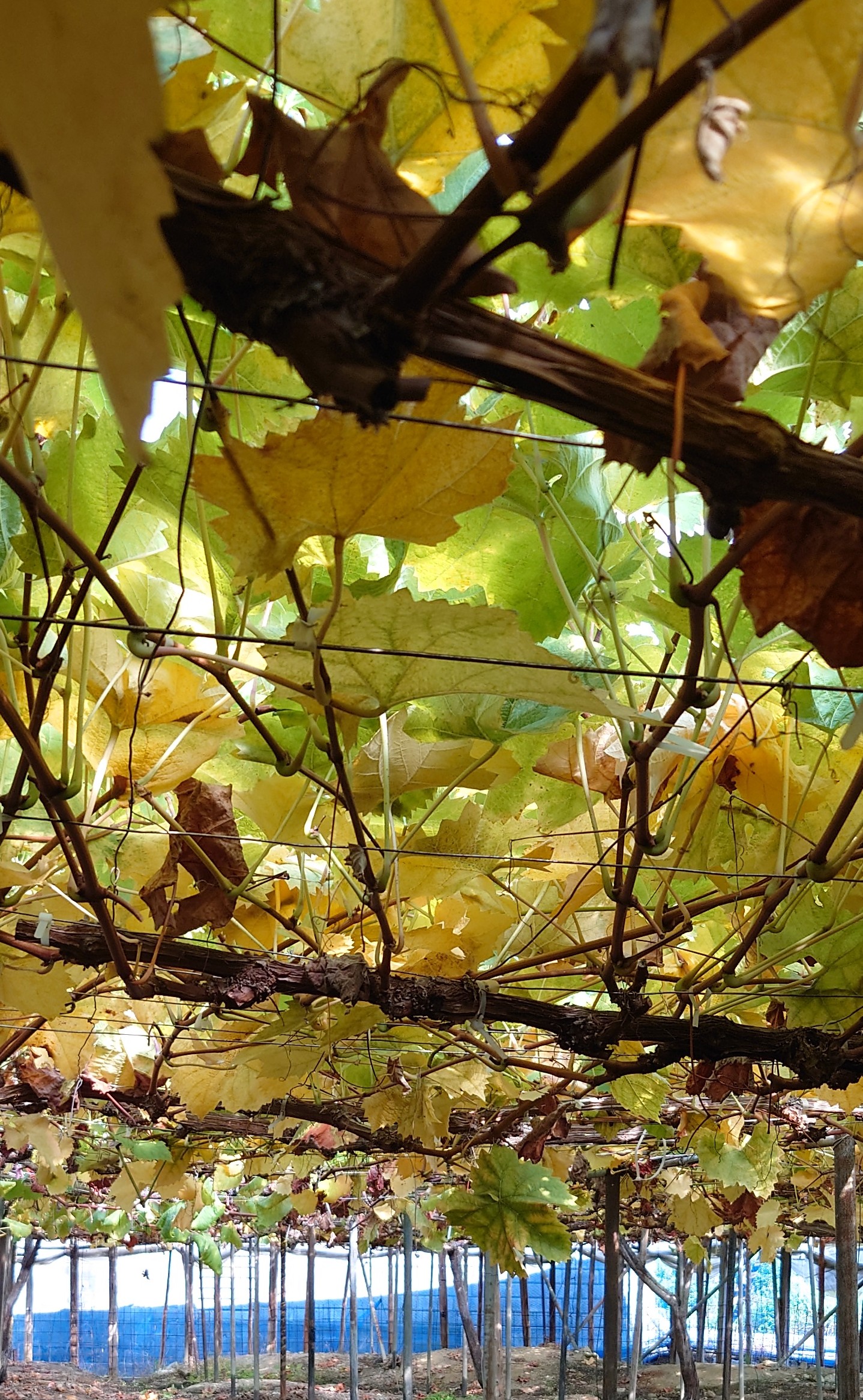 けれど、ハウスの中のぶどうの葉は黄色く色づいていて、イチョウみたいでとてもキレイです。