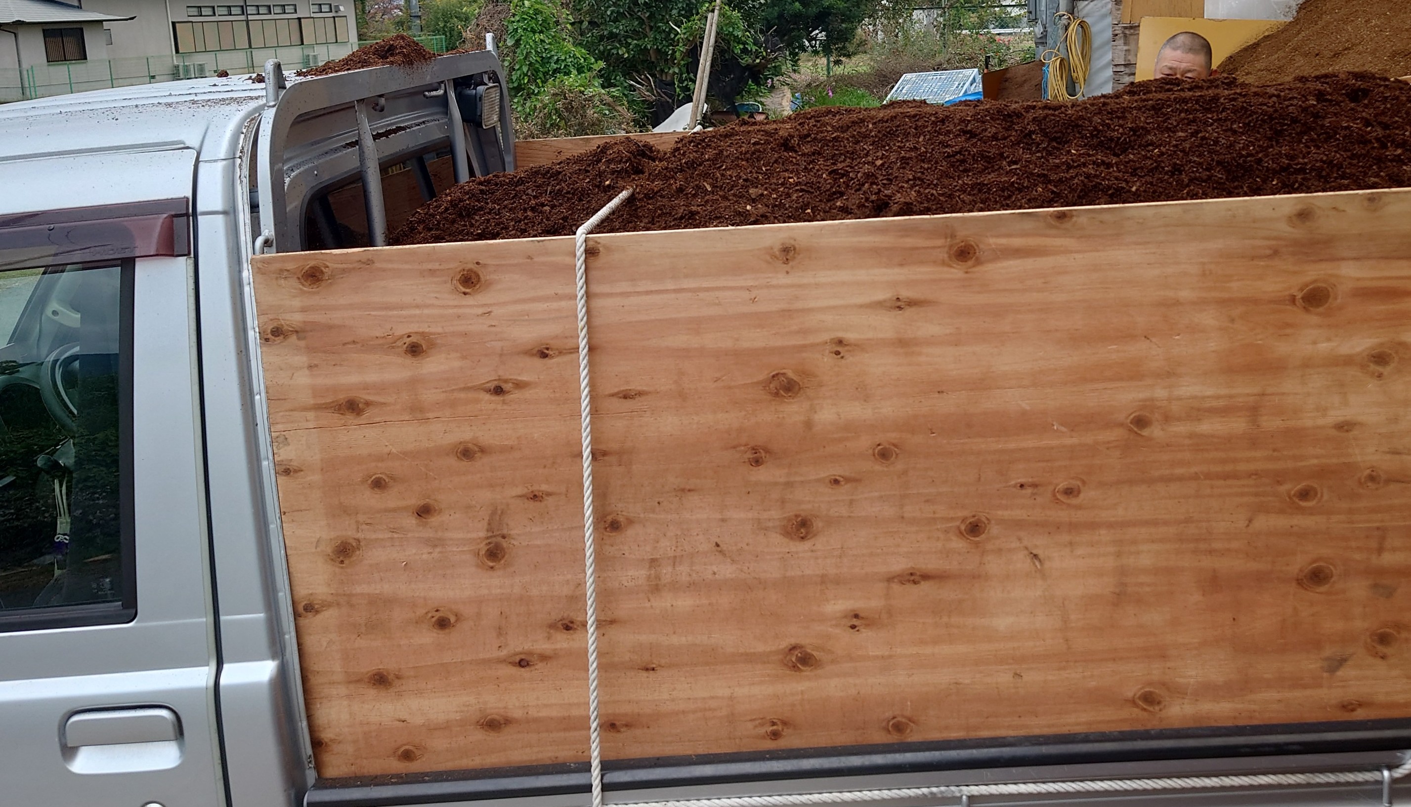 本当はもっとたくさんの量が欲しくて、何回も往復したいのですが、剪定の仕事も遅れてるので剪定をし終わって時間ができたら…ということで。